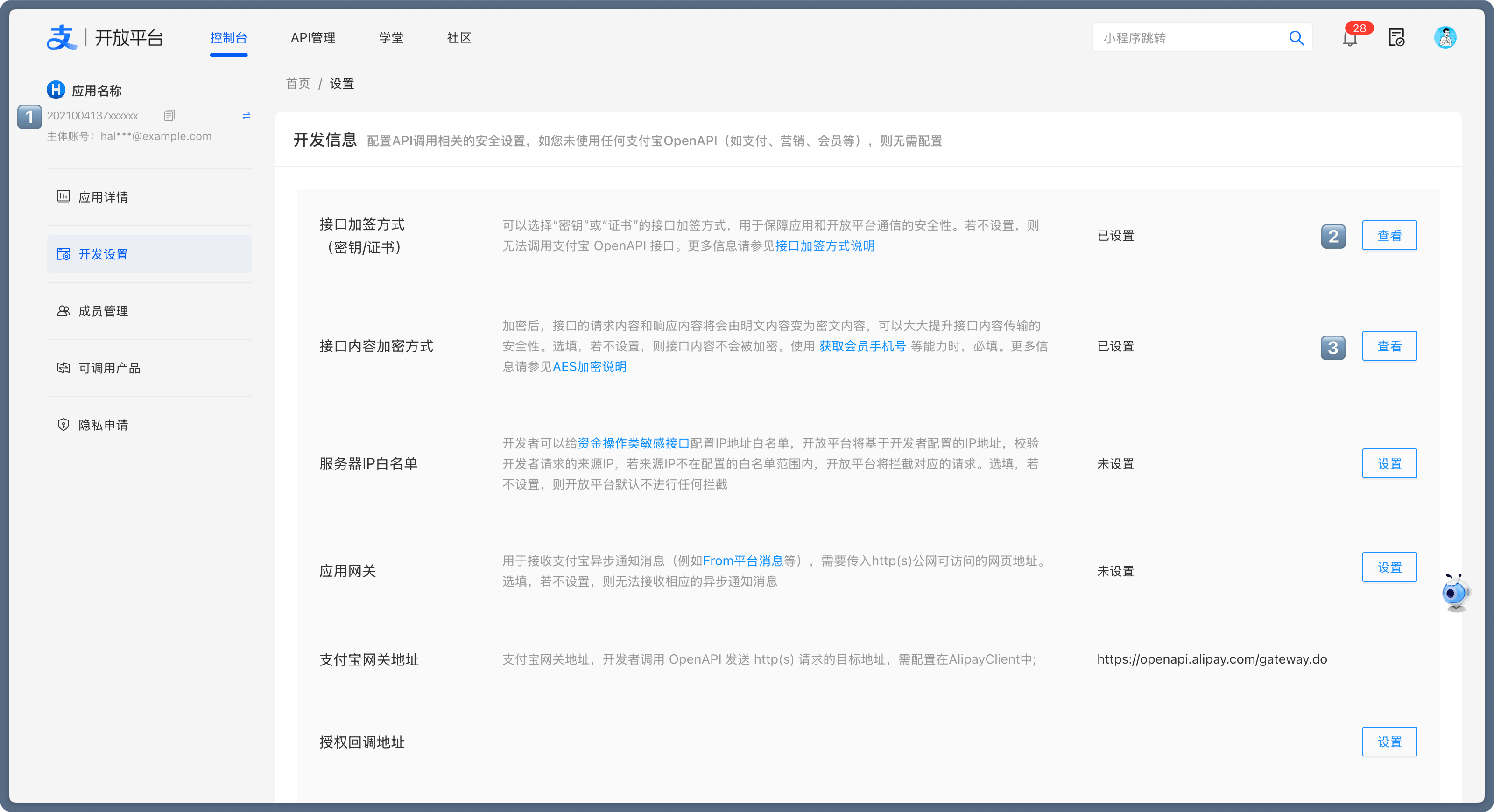 • 支付宝账号 ID:进入支付宝开放平台的账户中心,复制 账号 ID